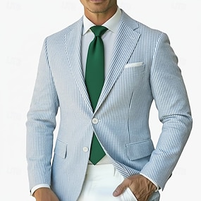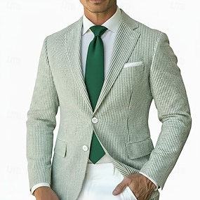 Férfi Blézer dzseki Zárható gallér Divat Pehelysullyú Alkalmi Csíkos Blazer Seersucker blézer Arcpír rózsaszín Égszínkék Zsálya Szabott Egysoros kétgombos
