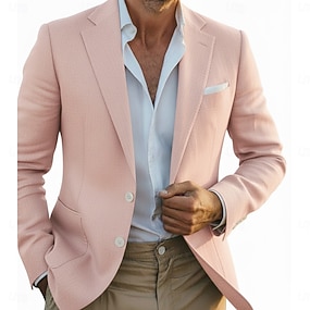 Férfi Blézer dzseki Vászonblézer Bevágás gallér Retro Klasszikus Iroda Egyszínű Vászonblézer Fekete Fehér Arcpír rózsaszín Szabott Egysoros kétgombos