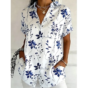 Női Ing Hosszú Ujjú Gombos Blúz Virágmintás Vintage Hétköznapi Stílusos Rövid Ujjú Ing Gallér Normál Pólók Mindennapi Fekete Fehér Sárga Piros Kék Nyár Tavasz
