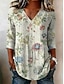 Női Blúz Nyomtatott Virágos Grafika Csehország Szüret Alkalmi Háromnegyedes V-alakú Normál felsők Napi Fekete Rubin Narancssárga Lóhere Nyár Tavasz Ősz