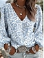 Női Blúz Nyomtatott Virágos Grafika Elegáns Csehország Szüret Hosszú ujj V-alakú Normál felsők Napi Szabadság Medence Hamvaszöld Lóhere Nyár Tavasz