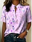 Női Póló Nyomtatott Virágos Alkalmi Rövid ujjú V-alakú Normál felsők Napi Alkalmi Medence Arcpír rózsaszín Lóhere Nyár