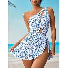 Női Fürdőruha Egy darab 2 darab Monokini Szoknya Fürdőruha Hasszorító Magas derék Vékony Nyitott hátú Szabadság Strandruházat Virágos Aszimmetrikus nyak Ujjatlan Fürdőruhák