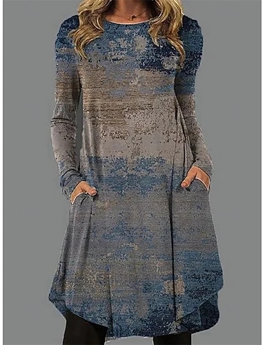 Női mini ruha kerek nyakú hosszú ujjú pólóruha t zásztóruha A vonalú ruha laza napi normál illeszkedés grafikai geometrikus rózsaszín kék lila ősz tél