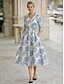 A-vonalú Midi Koktélruha Esküvői vendég ruha Örömanya ruha Háromnegyedes V-alakú Elegáns Szüret Egyszerű Előírásos Jacquard val vel Rakott