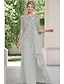 Nadrág Földig érő Örömanya ruha Háromnegyedes Ékszer Elegáns Előírásos Esküvői vendég Sifon Csipke val vel Gyöngydíszítés Rátétek