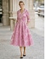 A-vonalú Ruhák Midi Gyöngyös Hímzett Party ruha Koktélruha Örömanya ruha Háromnegyedes V-alakú Elegáns Szüret Esküvői vendég Koktélparty Szatén Sztrecs szövet val vel Csipke Ráncolt Virág
