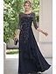 A-vonalú Földig érő Ingruha Esküvői vendég ruha Ünnepi ruha Örömanya ruha Háromnegyedes Állógallér Elegáns Előírásos Sifon val vel Virág