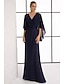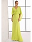 Szűk szabású Földig érő Esküvői vendég ruha Ünnepi ruha Estélyi ruha Örömanya ruha Háromnegyedes Terített nyak Elegáns Előírásos Sifon val vel Fodrozott
