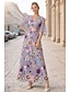 A-vonalú Ruhák Földig érő Party ruha Koktélruha Örömanya ruha Féhosszú V-alakú Elegáns Szüret Pazar Előírásos Esküvői vendég Kentucky Derby Tüll val vel Virágos nyomat Hímzés Virág