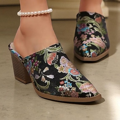 női 1950-es évekbeli vintage paisley fűzős oxford magassarkú - retró blokksarkú elegáns cipők művészeknek és őszi irodai viseletre