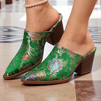 női világoszöld prémium bőr lapos talpú cipő – bő szabású, kényelmes, bebújós cipő kézzel készített virágmintás részletekkel vidéki élethez, kertészkedéshez és mindennapi viseletre