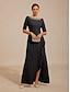 Női Maxiruha A vonalú ruha Elegáns Harangujj Estély Koktélparty Strassz Normál Tömör szín Háromnegyedes Terített nyak Fekete