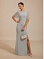 Női Maxiruha A vonalú ruha Elegáns Estély Díszített Normál Tömör szín Rövid ujjú Terített nyak Poros kék