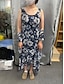Női Midi ruha A vonalú ruha Elegáns Vakáció Esküvői vendég Koktélparty High Low Normál Virágos Ujjatlan Terített nyak Sötétkék