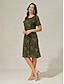 Női Mini ruha Sifon ruhák Elegáns Napi Esküvői vendég Normál Virágos Rövid ujjú Terített nyak Olíva