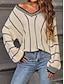Női Pulóver Divat Utcai sikk Alkalmi Csíkos Bordázott V-alakú Kötött Hosszú ujj Normál felsők Kötött Napi Szabadtéri Hétvége Bézs Nyár Tavasz