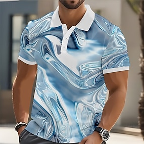 Férfi Absztrakt Márvány Póló Rövid ujjú Pólóingek Galléros ingek Alkalmi Szabadtéri Sportruházat Hétköznapi viselet 3D nyomtatás Gombok Nyár Medence Fehér Világoskék