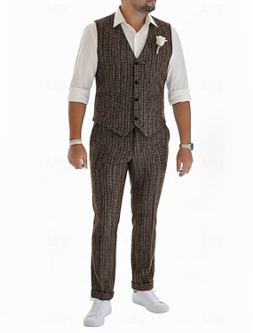 Férfi Esküvő Esküvői öltönyök Hasított rever Fekete Barna Előírásos Halszálkás Standard 2 részes készlet