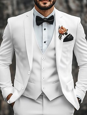 Férfi Esküvő Tengerparti esküvő ruhák Nyitott Fehér Egyszínű Szabott 3 részes készlet Egysoros két gombos