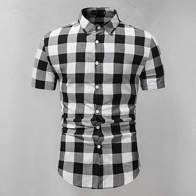 Férfi Ing Gombos póló Kockás Esküvő Parti Fehér Rövid ujjú Hajtóka Nyár Ruházat