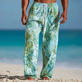Férfi Kókuszfa Színátmenet színe Trópusi növények Nadrág Bő nadrág Alkalmi nadrág Közepes csípő Hawaii Szabadtéri Vakáció Strandruházat Elasztikus húzózsinóros derékrész Lenvászonszerű nadrág