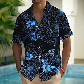 Férfi Virágminta Virágok Ing Nyári póló Gombos póló Rövid ujjú Alkalmi divat Szabadtéri Vakáció Hétköznapi Nyár Tavasz Térfogatcsökkenés 3D nyomtatás galléros ingek Első egy zseb Sötétkék