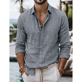 Férfi Ing Vászon ing Nyári póló Alkalmi ing Stranding Gombos póló Sima Hétköznapi Vakáció Fekete Fehér Világoszöld Arcpír rózsaszín Hosszú ujj Térfogatcsökkenés Nyár Tavasz Ruházat