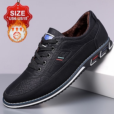 Férfi fekete műbőr tornacipő puha szőrme béléssel és csúszásgátló talppal, meleg hétköznapi cipő téli sétákhoz, szabadtéri utazáshoz és mindennapi viselethez