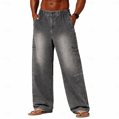 Férfi Nadrág Alkalmi nadrág Nyári nadrág Bő nadrág Savmosó nadrágok Rugalmas derék Egyenes lábbal Sima Mokaszinok Légáteresztő Teljes hossz Hétköznapi Napi Szabadtéri Divat Retró Medence Szürke Nem