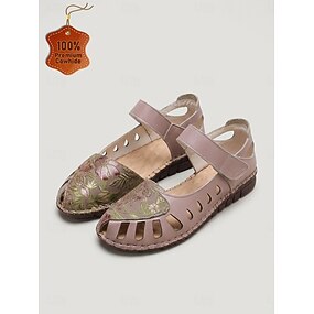 női mandulamintás, virágos hímzésű lapos talpú, állítható pántos, kézzel varrott bőr alkalmi cipő, kényelmes, puha talpú lábbeli utazáshoz, sétákhoz, kerti kirándulásokhoz &hétköznapi viselet