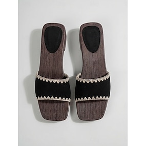 női fekete lapos talpú szandál - kényelmes, szögletes orrú szandál szabadtéri nyaraláshoz, nyári utazáshoz &laza tengerparti séták
