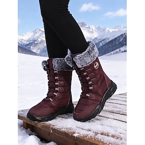 női bordó, középvádárig érő téli hótaposó műszőrme szegéllyel, vízálló, szigetelt kültéri csizma túrázáshoz, síeléshez &hideg időjárás