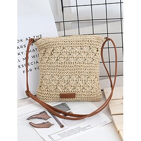 kézzel szőtt szalmából készült crossbody táska nőknek – bohó rattan válltáska állítható pánttal, könnyű nyári strandtáska nyaraláshoz, utazáshoz és alkalmi kirándulásokhoz, hadsereg zöld barna khaki
