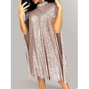 Női Mini ruha Váltó ruha Buli koktél Félig hivatalos ruhák Szabadtéri Parti Esküvői vendég Flitter Laza öltözet Tömör szín Hosszú ujj Körgallér Ezüst Vörös arany Fekete