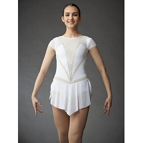 Kűrruha Női Lány Klizanje na ledu Ruhák Fehér Kollázs Hüvelykujj bújtató Háló Nagy rugalmasságú Edzés Verseny Kűrruhák Klasszikus Rövid ujjú Jégkorcsolyázás Műkorcsolyázás
