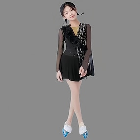 műkorcsolya ruha női lány korcsolya ruha fekete patchwork hüvelykujj nyúlós edzés gyakorlat profi korcsolya viselet kristály / strassz hosszú ujjú jégkorcsolya műkorcsolya