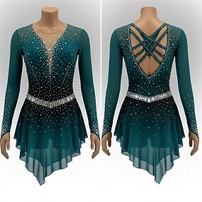Kűrruha Női Lány Klizanje na ledu Ruhák Sötétzöld Aszimmetrikus szegély Háló Spandex Nagy rugalmasságú Edzés Gyakorlat Verseny Kűrruhák Kézzel készített Kristály / Strassz Hosszú ujj Jégkorcsolyázás