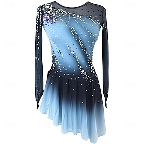 Kűrruha Női Klizanje na ledu Ruhák Kék+Világoskék Nyúlós Professzionális Verseny Kűrruhák Hosszú ujj Jégkorcsolyázás Műkorcsolyázás