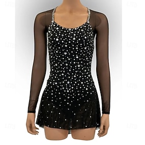 műkorcsolya ruha női lány jégkorcsolya ruha fekete nyitott hátú aszimmetrikus szegély hálós nagy rugalmasságú edzés versenykorcsolya ruha klasszikus kristály / strassz hosszú ujjú műkorcsolya