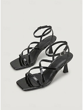 női fekete lakkbőr szandál – pántos, vastag sarkú cipők irodába, hivatalos eseményekre és randevúkra