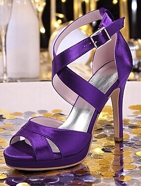 női lila szatén pántos magassarkú – platformos koktélszandál csattal esti bulikra és esküvőkre