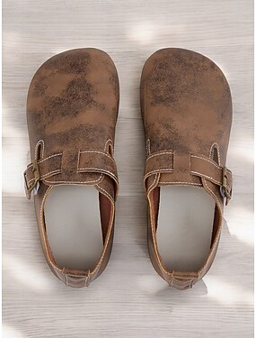 női vintage barna mezítláb felbújós cipők csatos pánttal és szorongatott műbőr bevonattal, tökéletesek hétköznapi viselethez