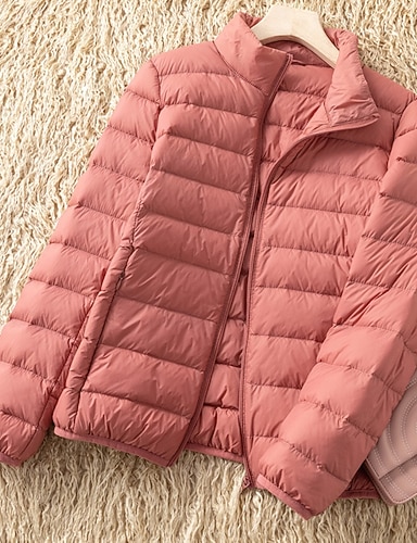 Női Pehely Melegen tartani Kényelmes Cipzár Zseb Aktív Divat Sima Utca Napi Szabadság Cipzár Szokványos Állógallér Normál Hosszú ujj Felsőruházat Fekete Bor Medence Ősz Tél
