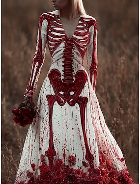 Női Maxi Ruha Plisszírozott Ruha Boho Randevú Kimenő Normál Fit Koponya Hosszú Ujjú V Nyak Piros Ősz