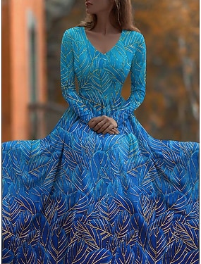 Húsvéti Női Maxi Ruha Méregtelen Lélegző Könnyű Napruha Átmeneti Ruha Hétköznapi Parti Ünnepi Laza Fit Virágos Paisley Hosszú Ujjú V Nyakú Tengerészkék Piros Narancs Nyár Tavasz