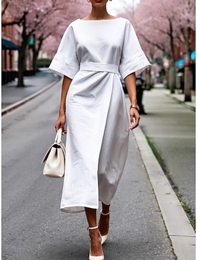 Női Midi ruha Munkaruha Köntösruha Elegáns Divat Modern Szabadtéri Vakáció Alkalmi Normál Laza öltözet Sima Rövid ujjú Terített nyak Csónaknyak Fekete Fehér Khakizöld Sötétkék Nyár Tavasz
