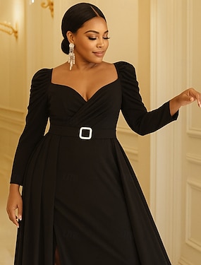 Harang fazon Földig érő Esküvői vendég ruha Ünnepi ruha Estélyi ruha Örömanya ruha Hosszú ujj V-alakú Elegáns Szüret Molett Szabadság Hivatalos estély Menyegző val vel Flitter
