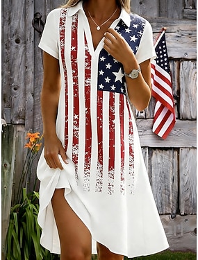 Amerikai függetlenség napja Női Mini ruha A vonalú ruha Szabadság Alkalmi Tengerpart Normál Grafika Zászló Csillagok és sávok Rövid ujjú V-alakú Medence Fehér Rubin Sötétkék Nyár Tavasz