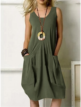 Női Midi ruha 100% pamuk Váltó ruha Nyári ruha hétköznapi ruha Alap Klasszikus Alkalmi Napi Szabadtéri Normál Tiszta szín Ujjatlan U-alakú Keki zöld Sötétkék Narancssárga Sárgabarack Nyár Tavasz